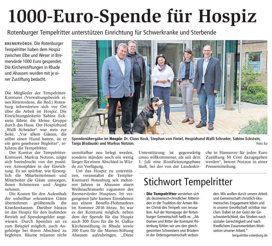 03.02.2014 "Geld fürs Hospiz" Scheeßeler Anzeiger