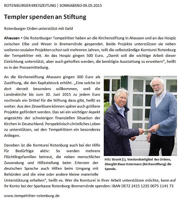 01.01.2013 “Auf den Spuren der Templer”: Rotenburger Rundschau